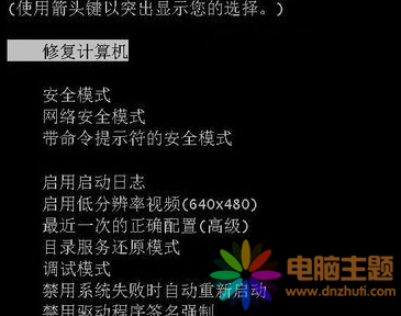 2.關(guān)機(jī)之后,大家就一直猛按F8,這樣可以進(jìn)入系統(tǒng)的高級(jí)設(shè)置界面,如下圖中所示,這里無(wú)法使用鼠標(biāo),大家可以通過(guò)上下左右鍵進(jìn)行操作。咱們選中修復(fù)計(jì)算機(jī),然后單擊回車(chē)。